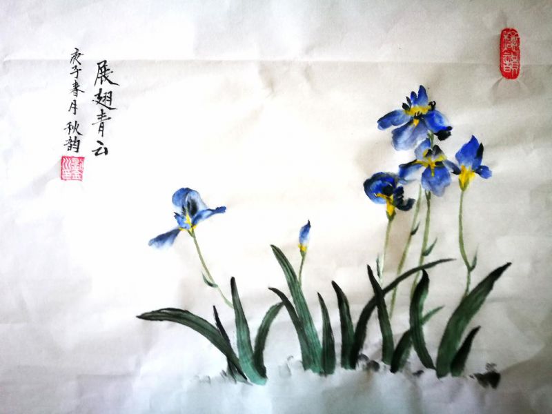 海外文轩 阿立 题秋韵鸢尾花 轱辘体